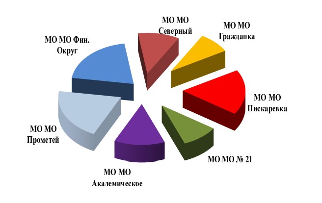 Диаграмма пожаров в жилых домах по муниципальным округам района