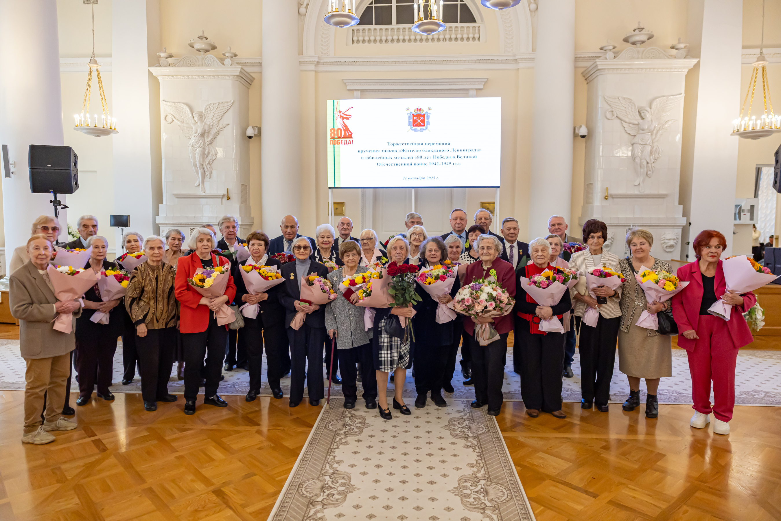 В Смольном губернатор Александр Беглов и председатель Законодательного Собрания Александр Бельский вручили знаки «Жителю блокадного Ленинграда» и юбилейные медали «80 лет Победы в Великой Отечественной войне 1941-1945 гг.» первым 35-ти ленинградцам из числа тех, кто прожил в осаждённом городе менее четырёх месяцев.