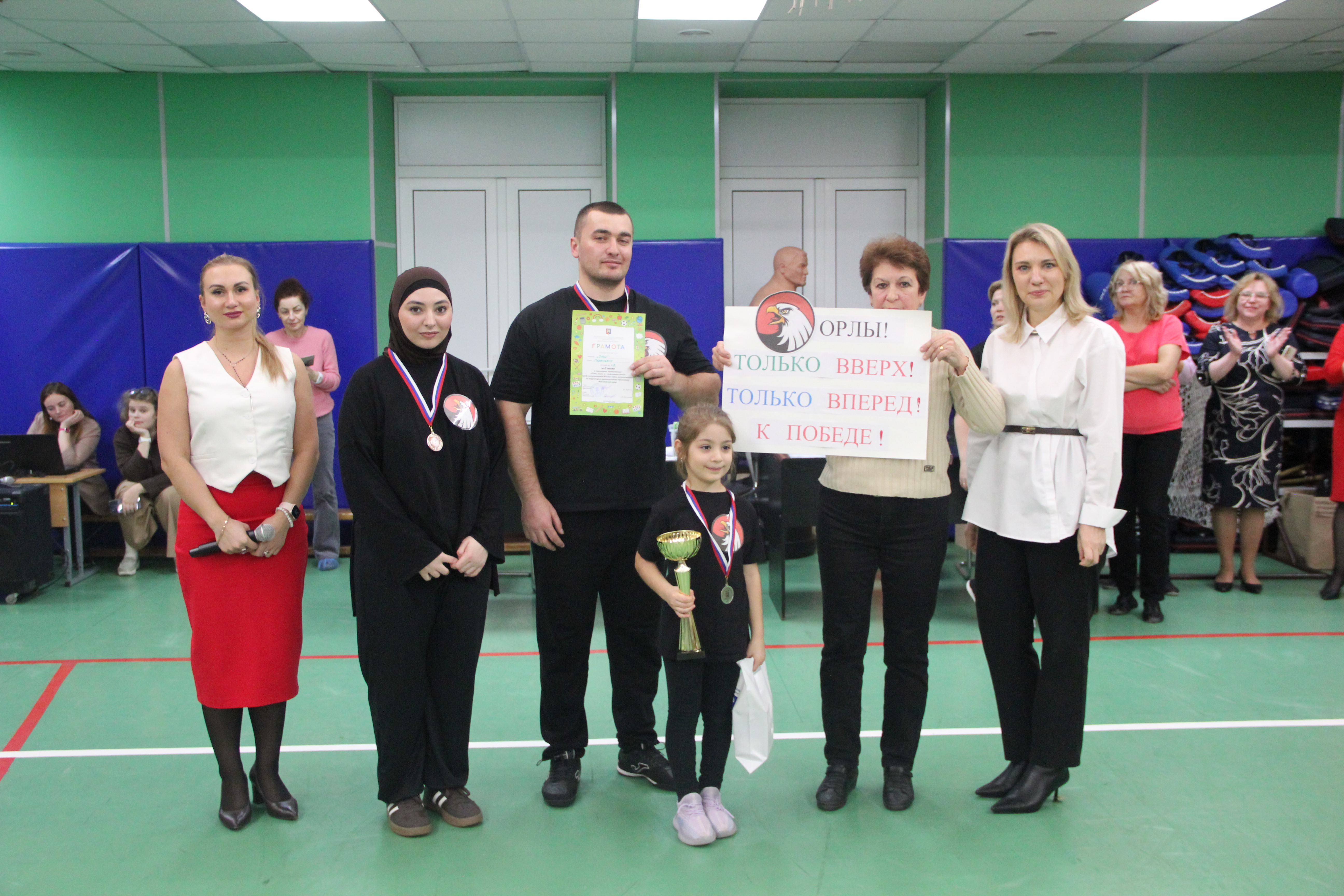 Почти час в спортивном зале было жарко и весело как никогда. После подсчета итогового времени, судьи определили самых быстрых и ловких пап, мам и детей. А глава Местной администрации Людмила Дмитриева вручила победителям и дипломантам соревнований кубки, медали, грамоты и подарки. Завершился спортивный праздник, как это всегда бывает, общим фото команд на память.