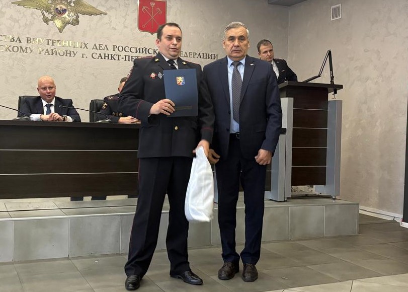 На торжественном мероприятии, посвященном праздничной дате, за выполнение особо сложных и важных заданий по итогам оперативно-служебной деятельности, добросовестное исполнение служебных обязанностей и высокие показатели в профессиональной деятельности глава Финляндского округа вручил грамоты начальнику УМВД, полковнику полиции Андрею Селюгину, капитану полиции Яну Францкевичу и младшему лейтенанту полиции Владиславу Бороздину.