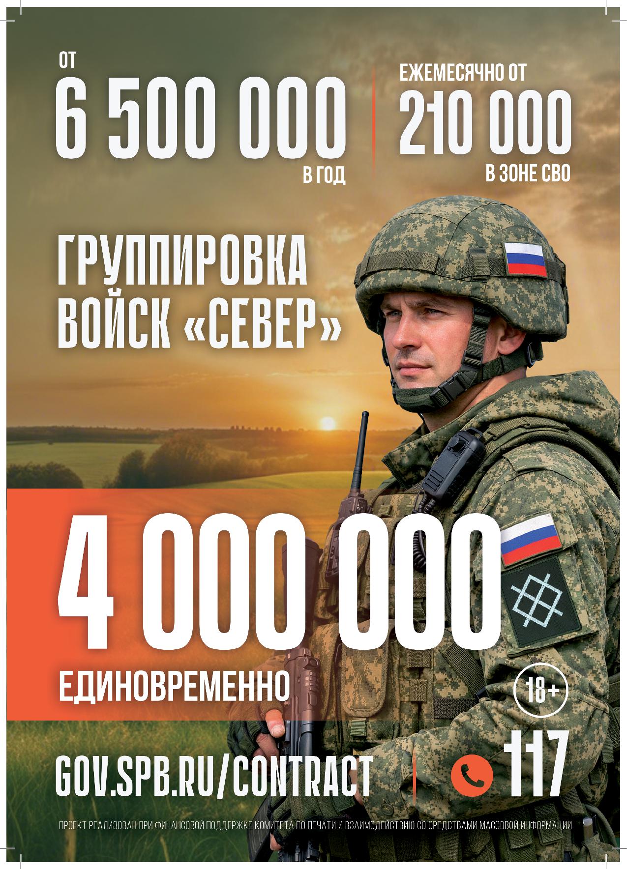 В Санкт-Петербурге созданы все условия для заключения контракта на военную службу в Вооруженных силах Российской Федерации. Во всех районах города открыты и работают информационные пункты. В дополнение к федеральным определены региональные выплаты заключившим контракт. Действует широкий перечень социальных гарантий и льгот участникам специальной военной операции. Организована работа с жителями Санкт-Петербурга, российских регионов, гражданами других стран.