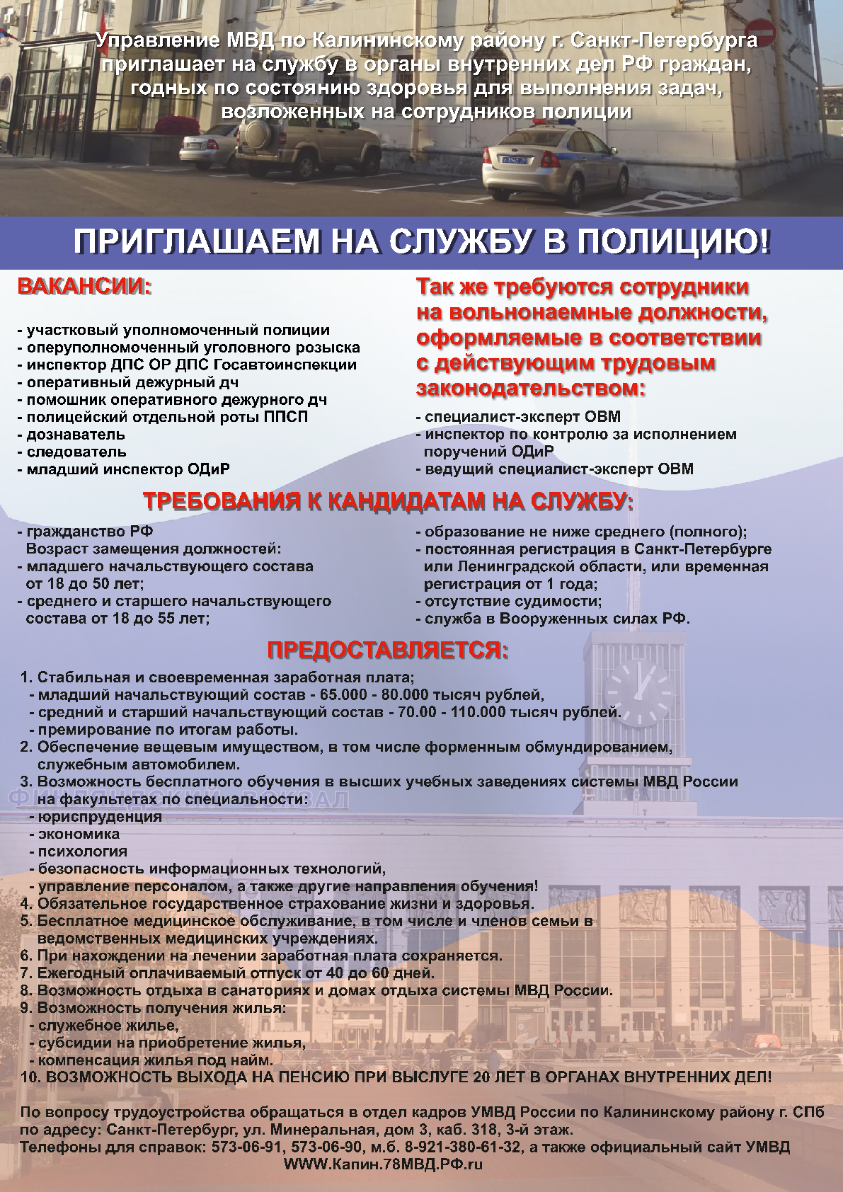 УМВД России по Калининскому району приглашает на службу в органы внутренних дел РФ