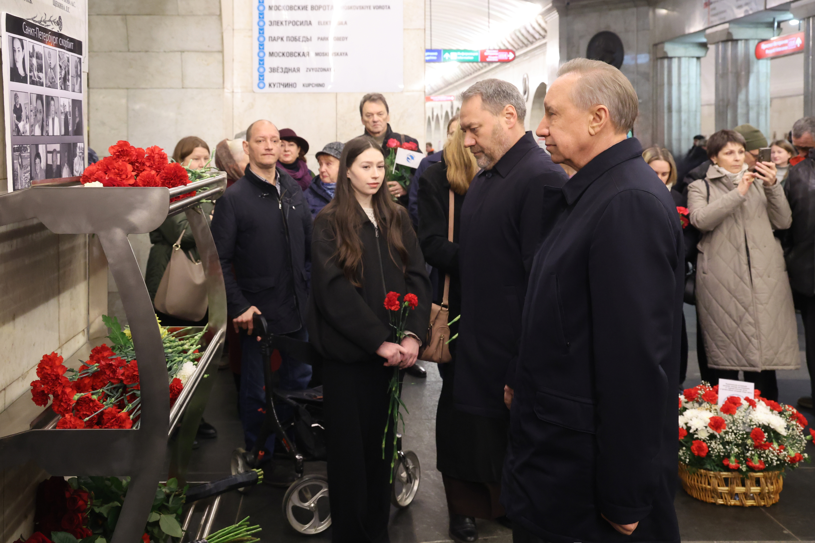 Вместе с председателем Законодательного собрания Санкт-Петербурга Александром Бельским они возложили цветы к памятной табличке на станции метро «Технологический институт-1».